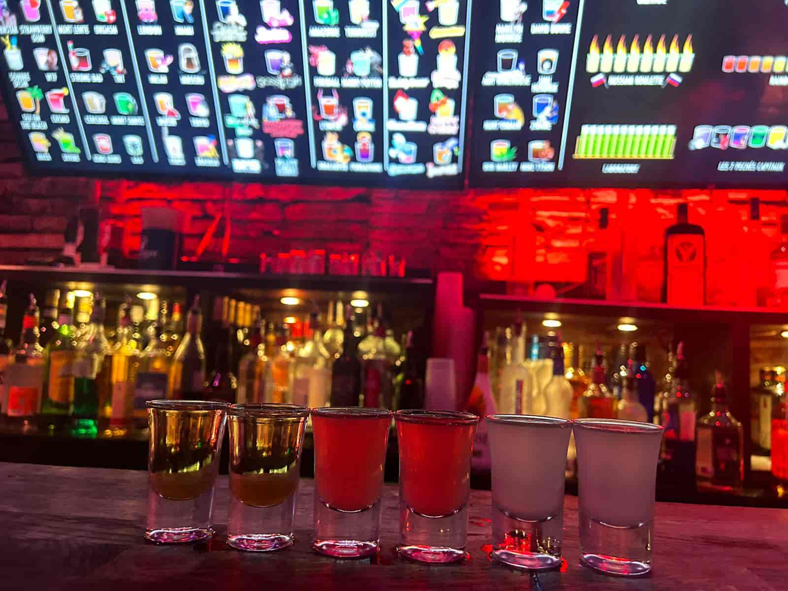 Shooters à partir de 2,50€ ; Mètres de shots à partir de 19€.