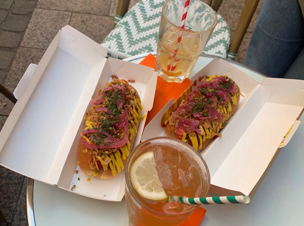 C’est en marchant dans le quartier des Carmes non loin de la Garonne que nous sommes tombés sur Bamboche, une nouvelle enseigne toulousaine qui propose des hot-dogs maison le midi et qui se transforme en bar à tapas et cocktails jusqu’au bout de la nuit. Ainsi, nous avons savouré un délicieux hot-dog débordant d’oignons confits accompagné d’une limonade bien fraiche sur la terrasse, parfaite pour une pause reposante. A l’intérieur de l’établissement vous pouvez également trouver à l’étage un espace pour travailler ou bouquiner au calme.