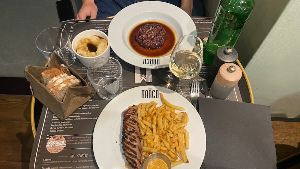 Nous sommes venus dîner chez Marco. Ce soir-là, j’avais envie d’un plat réconfortant qui me rappelle les saveurs du Sud-Ouest. J’ai donc commandé un magret de canard, servi généreusement avec des frites croustillantes. Chaque bouchée respirait qualité et finesse. Il est vrai que la simplicité, quand elle est maîtrisée, devient un véritable luxe. Entre amis ou en amoureux, chez Marco, c’est l’endroit parfait pour partager un véritable moment gourmand et convivial. Je vous assure que vous ne serez pas déçus et que vous finirez par y revenir !