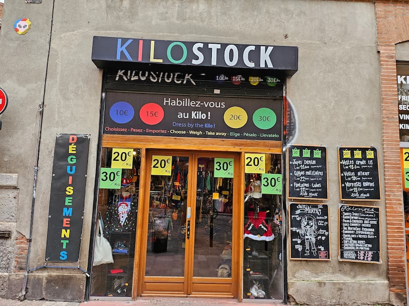 Du style, de l’éthique et des bonnes affaires: bienvenue à Kilostock ! Kilostock est une friperie située à deux pas du quartier d’Esquirol. La particularité de cette boutique c’est qu’ici tous s’achète au kilo ! Présente depuis les années 90 dans la ville, Kilostock propose des vêtements de seconde main à partir de 10€ le kilo. Elle dispose également d’un certain nombre d’accessoires et de chaussures, vendus à l’unité mais également à petit prix. Alors si vous désirez vous habiller à petit prix, à vos marques, prêts, chinez !