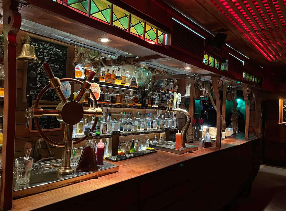 Dès que vous passerez l’entrée de ce bar, vous plongerez directement dans l’univers des pirates : bois sculpté, tonneaux, lanternes, gouvernail et lumière tamisée créent une ambiance immersive qui donne bien son nom à cet établissement : la cale sèche. Leur spécialité : le rhum, amateur ou non, vous ne serez pas déçu par la carte variée, des boissons classiques aux découvertes surprenantes ! Alors prêt à vous immerger au fond de la cale de ce vieux navire ? Vite ils lèvent l’ancre …