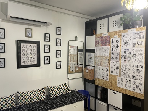 J’ai depuis longtemps l’envie d’avoir un tatouage sur la nuque, mais je ne trouvais pas de design qui me plaisait. J’ai passé la porte de La Vie Sauvage et suis tombée sur un flash de Mato, un des tatoueurs résidents du salon, qui pare désormais ma nuque. Les tatouages y sont réalisés avec de l’encre vegan, et des protections en bioplastique à base de fécule de maïs sont utilisées pour le matériel. Ce qui distingue ce salon, c’est son engagement : du matériel aux soins, tout est conçu dans une démarche écoresponsable.