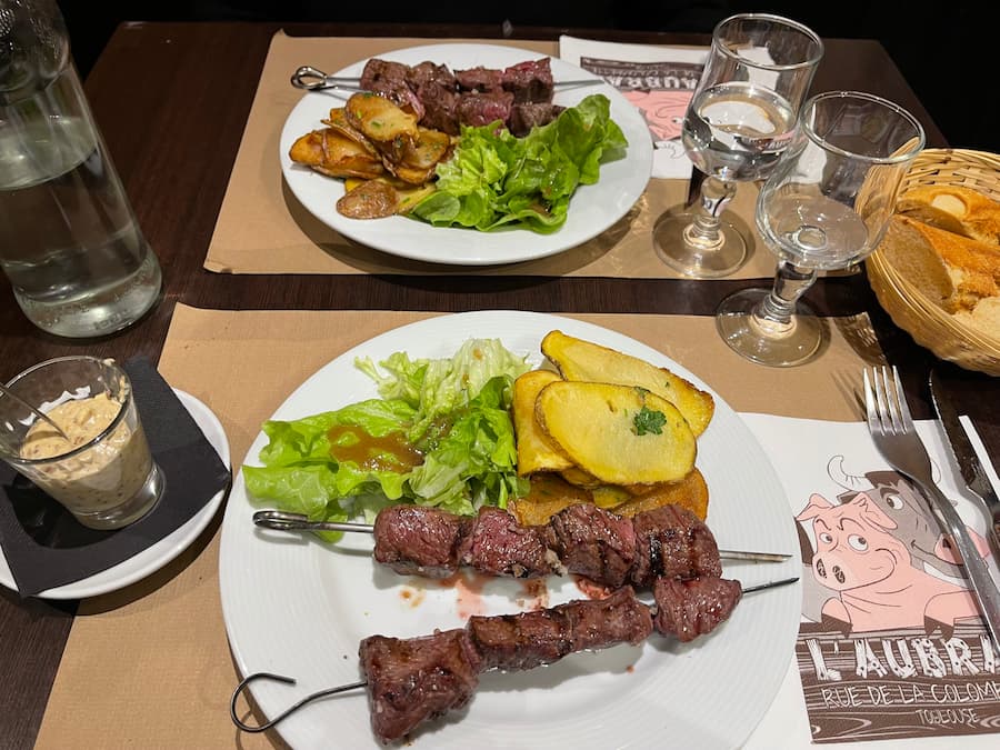 Vous êtes un bon vivant ? Vous vous sentirez à votre aise chez L’Aubrac. Ce restaurant met à l’honneur la viande du Gers depuis 30 ans, accompagnée d’une charcuterie proposée à volonté. D’une qualité exceptionnelle, la viande est cuite au feu de bois dans une magnifique cheminée, lui conférant un goût authentique et savoureux. La décoration chaleureuse crée une atmosphère conviviale, vous faisant sentir comme à la maison. Ajoutez à cela des serveurs très sympathiques, et vous obtenez une expérience gourmande et généreuse à ne pas manquer !