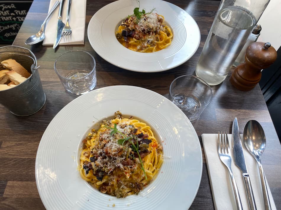 Les Fortes Têtes est, selon moi, le refuge idéal pour les travailleurs en quête d’un lieu chaleureux et convivial où ils pourront savourer des mets d’exception. Parmi eux, je recommande vivement les somptueuses linguines à la crème de butternut, sublimées par des noix croquantes et de la poitrine fumée fondante. Ce plat, confectionné avec soin à partir de produits frais et de saison, a été un véritable coup de cœur. Il me tarde désormais de découvrir leur brunch du dimanche, afin de prolonger cette expérience gustative tout au long de la matinée.