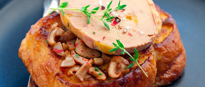 - Passez maintenant à la mise en forme du plat : déposez une tranche de brioche dans une assiette. La recouvrir délicatement de votre mélange de crème et champignons. Couper votre foie gras en morceaux et disposez le par-dessus.